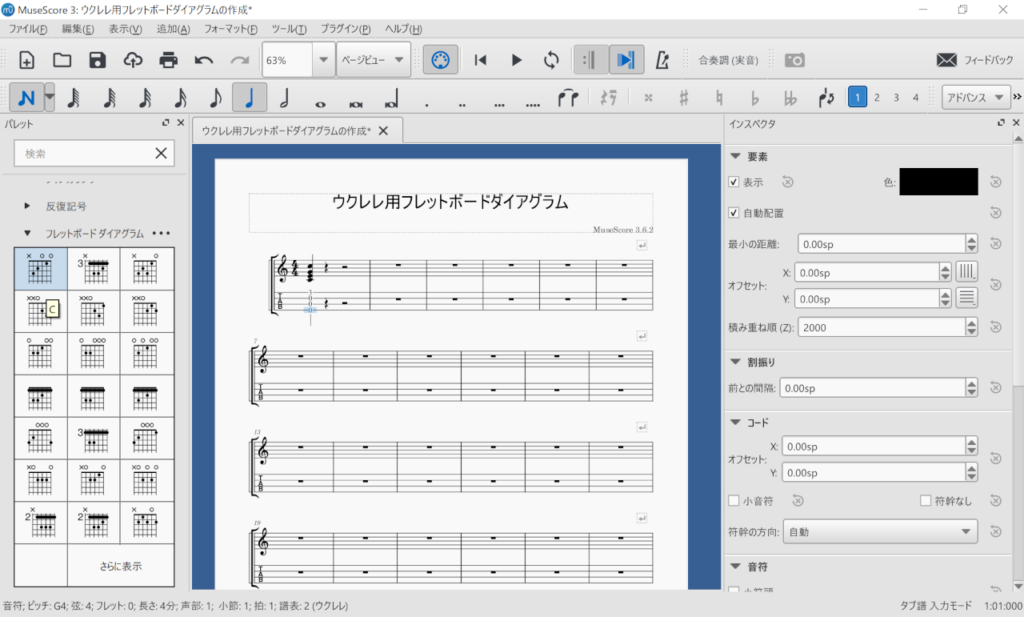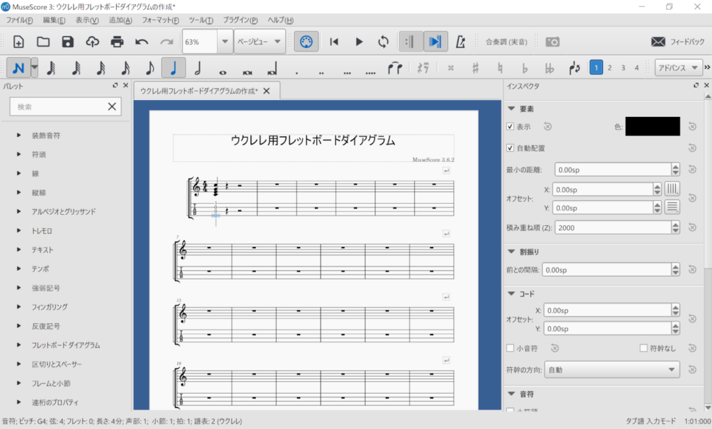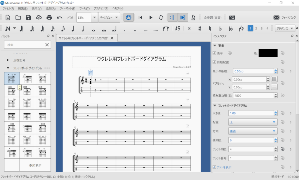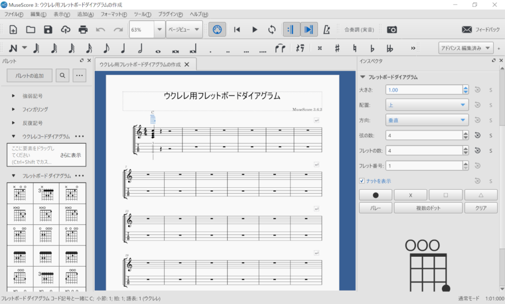 MuseScore3.6:ウクレレ用フレットボードダイアグラムの作成
