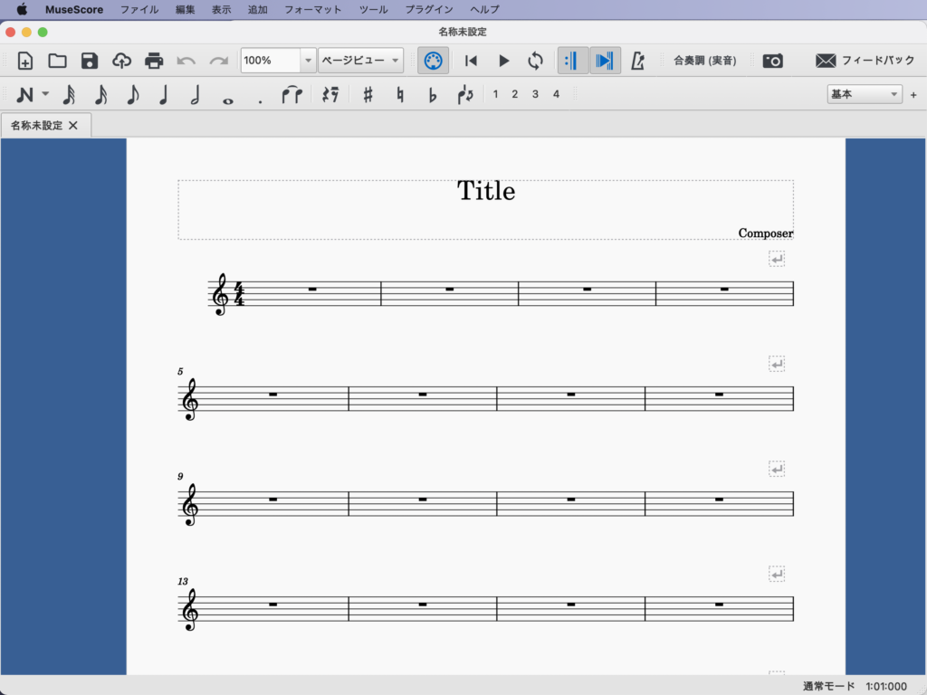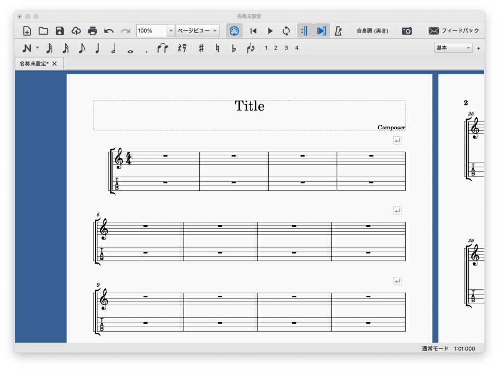 - 上記で作成した雛形ファイルの名前を楽曲名等に変更してから開き、最初に「Title」をダブルクリックもしくは、右クリックで表示されるメニューの「要素の編集」をクリックして、タイトルを変更します。同様の操作でComposerも変更できます。