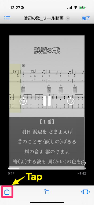 今回のような「ウクレレ弾き語り練習用の縦型ショート動画」を作る場合は、「YouTubeショート」では無く「リール動画」にした方が良さそうですね。